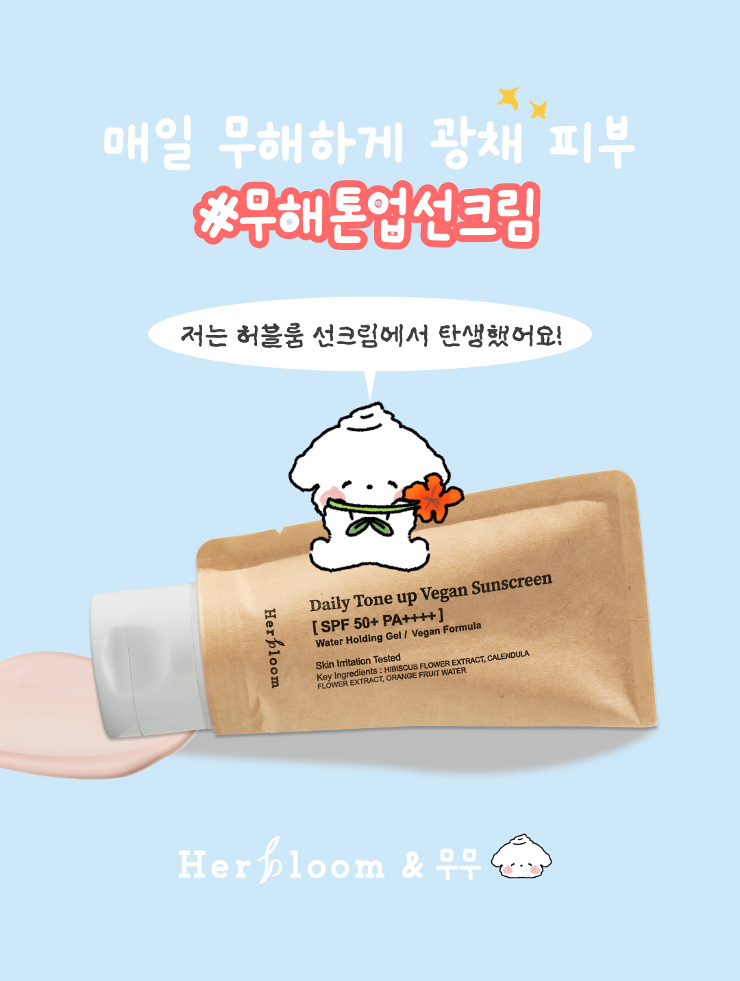 정제수, 히비스커스꽃추출물, 다이부틸아디페이트, 프로판다이올, 티타늄디옥사이드, 부틸옥틸살리실레이트, 카프릴릭/카프릭트라이글리세라이드, 카프릴릴메티콘, 디에칠아미노하이드록시벤조일헥실벤조에이트, 에칠헥실트리아존, 글리세린, 나이아신아마이드, 디에칠헥실부타미도트리아존, 1,2-헥산다이올, 펜틸렌글라이콜, 폴리메틸실세스퀴옥세인, 풍선덩굴꽃/잎/덩굴추출물, 포트마리골드꽃추출물, 향기제비꽃잎추출물, 연필향나무오일, 아틀라스시다나무껍질오일, 에키움 플란타기네움씨오일, 발삼아미리스껍질오일, 광곽향오일, 불가리스쑥오일, 로즈마리잎오일, 오렌지수, 폴리하이드록시스테아릭애씨드, 브이피/에이코신코폴리머, 옥틸도데칸올, 스테아릭애씨드, 소듐폴리아크릴로일다이메틸타우레이트, 암모늄폴리아크릴로일다이메틸타우레이트, 알루미나, 하이드록시프로필메틸셀룰로오스스테아록시에터, 코코-카프릴레이트/카프레이트, 다이카프릴릴카보네이트, 에틸헥실글리세린, 잔탄검, 아데노신, 해바라기씨오일불검화물, 발삼코파이바수지, 트라이에톡시카프릴릴실레인, 알루미늄하이드록사이드, t-부틸알코올, 토코페롤, 황색산화철, 적색산화철